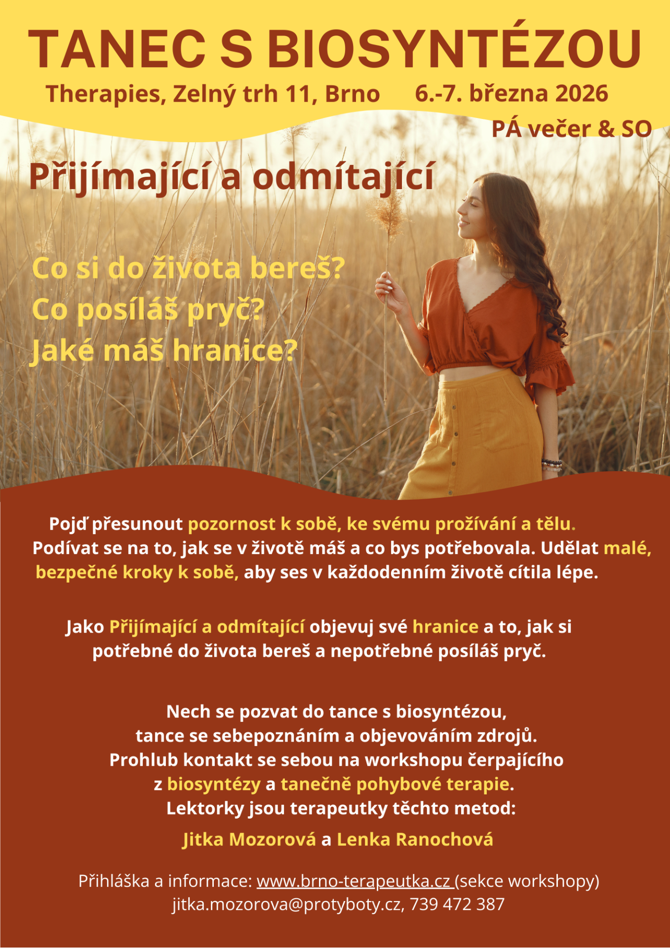 Přihláška a informace: www.brno-terapeutka.cz (sekce workshopy), jitka.mozorova@protyboty.cz, 739 472 387.